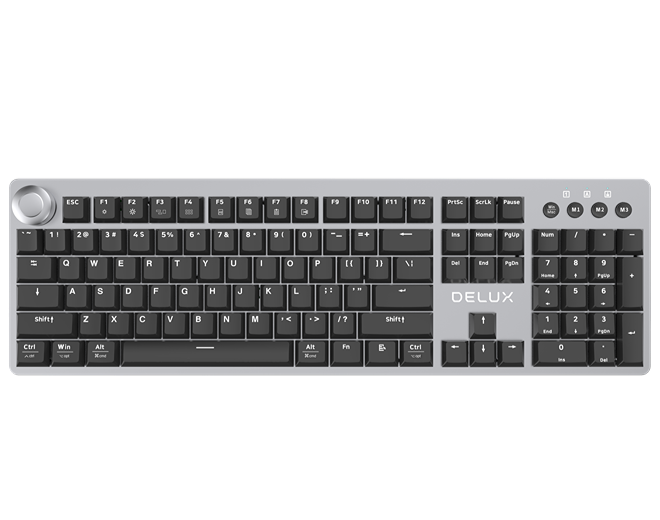 104 standard keys + 4 Multimedia keys + 1 knob