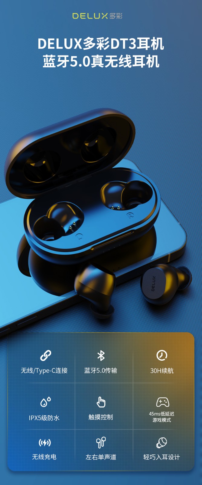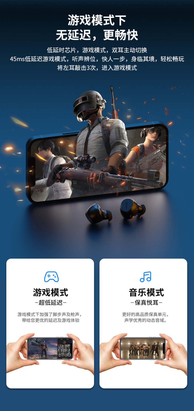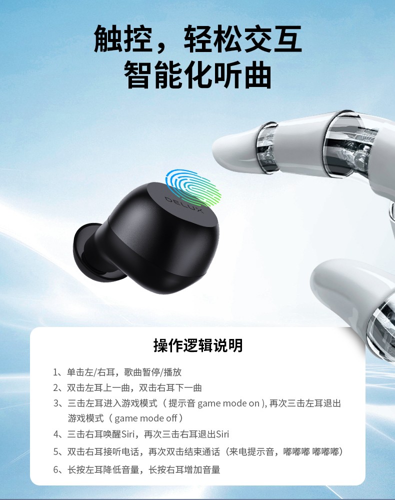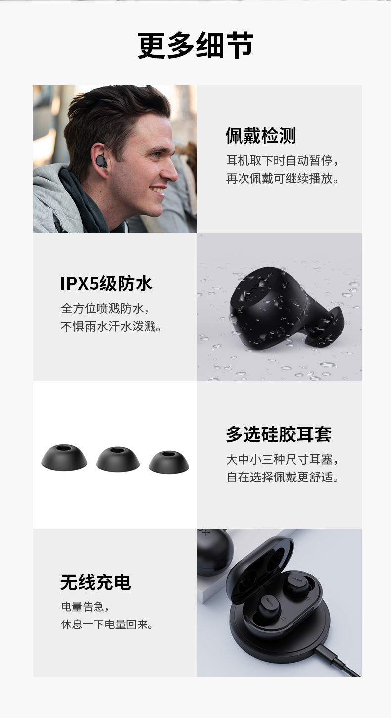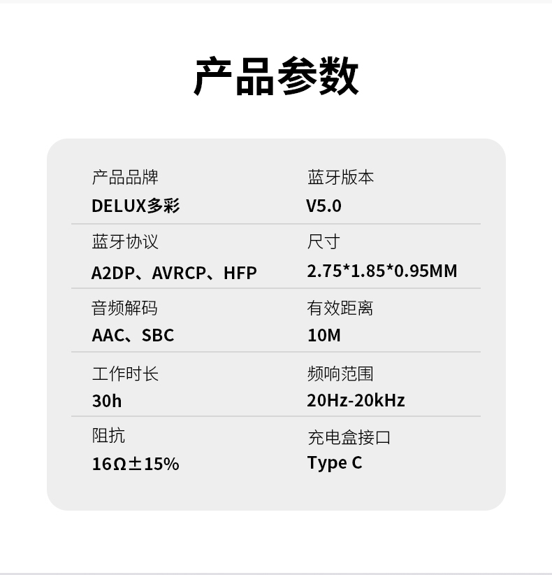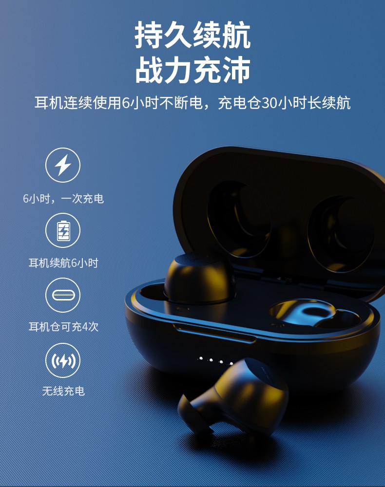 耳机-45mAh 锂电池;充电仓 -500mAH 锂电池